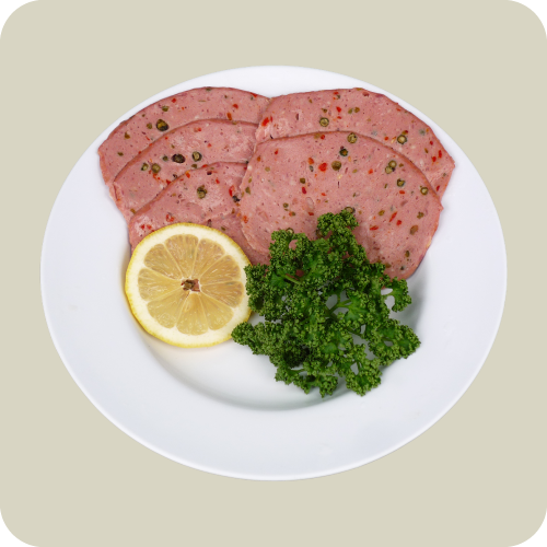 • ダチョウ肉100%を実現させた商品です。肉の美味しさを保ちつつ、赤、青パプリカとグリーンペッパーを加えて見た目と食感にアクセントを加えました。